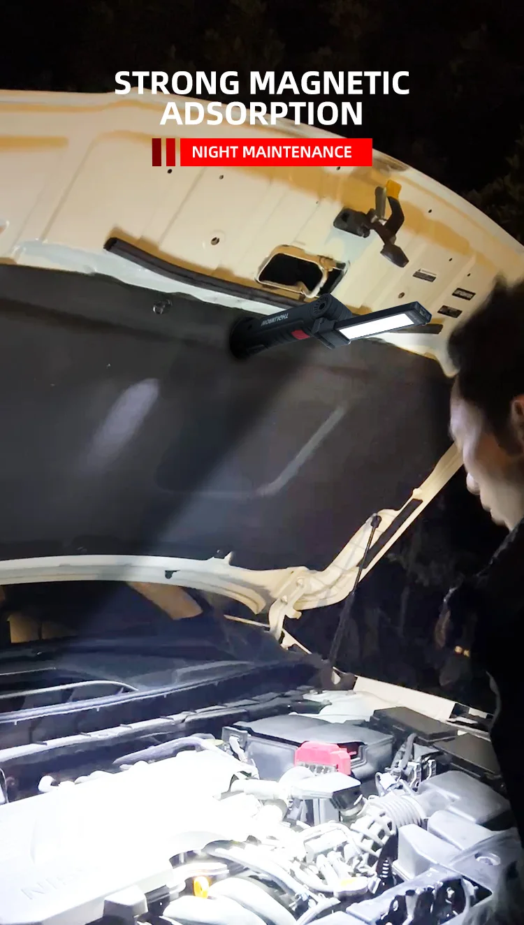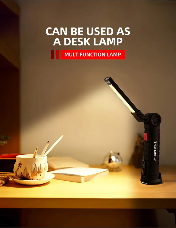 Linterna LED recargable por USB para acampar, luz de trabajo con imán y gancho, modo de iluminación impermeable, adecuada para trabajo nocturno